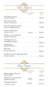 carte des vins et boissons
