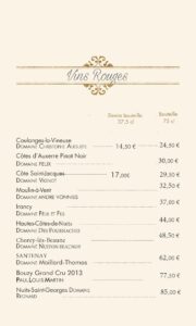 carte des vins et boissons