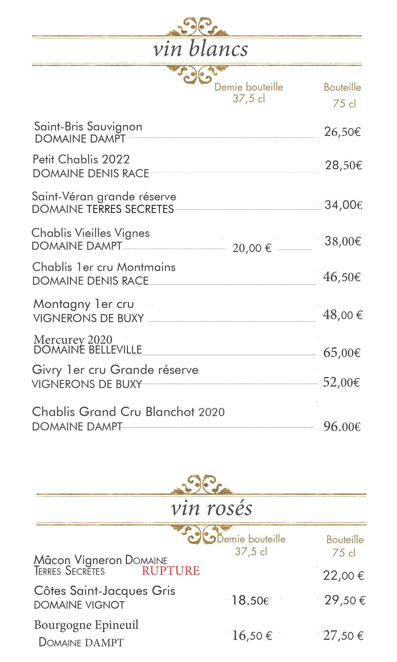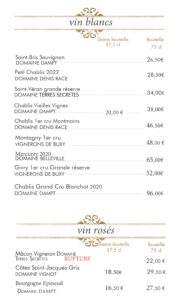 carte des vins et boissons