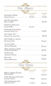 carte des vins et boissons