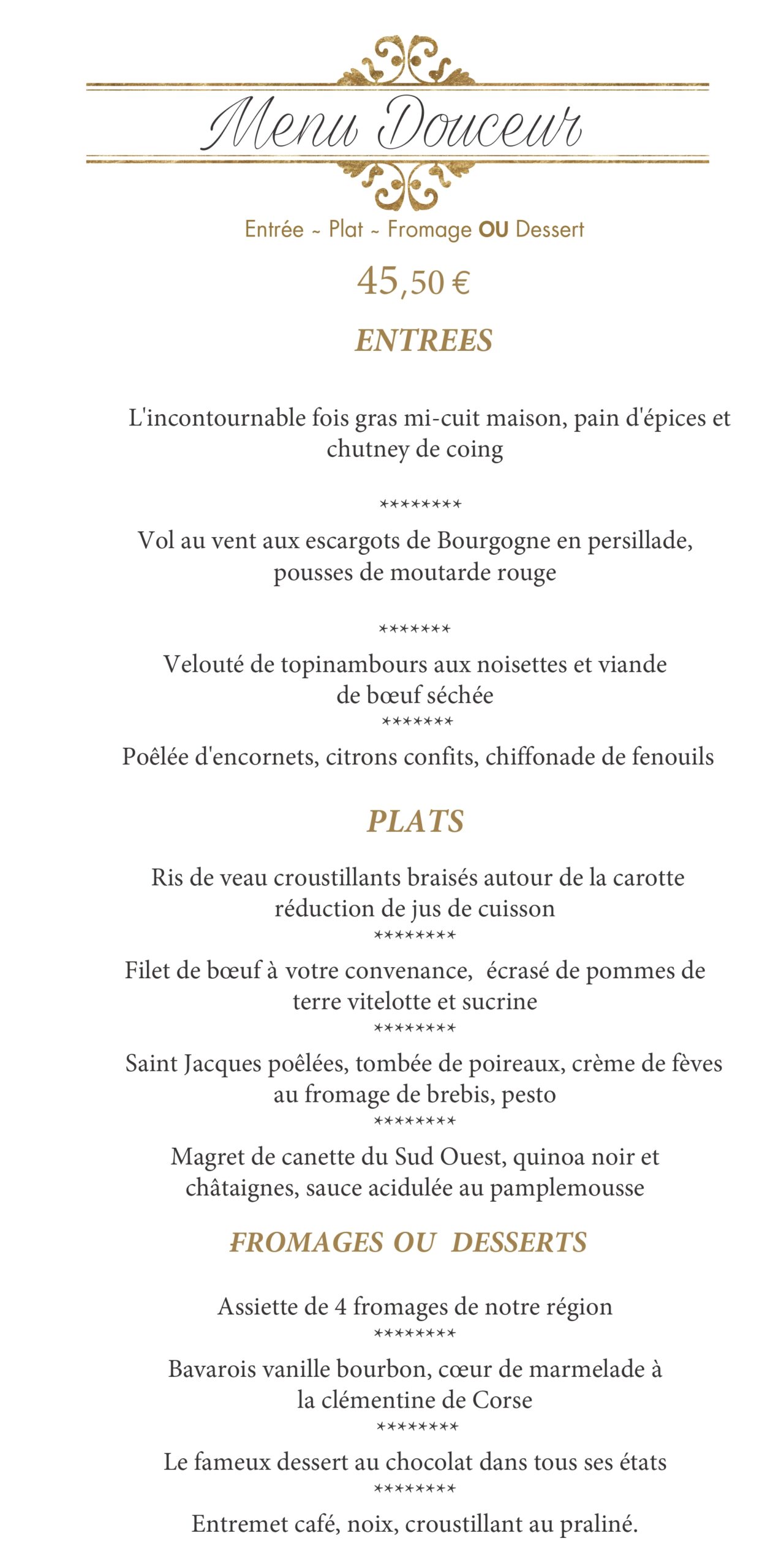 Menus et carte