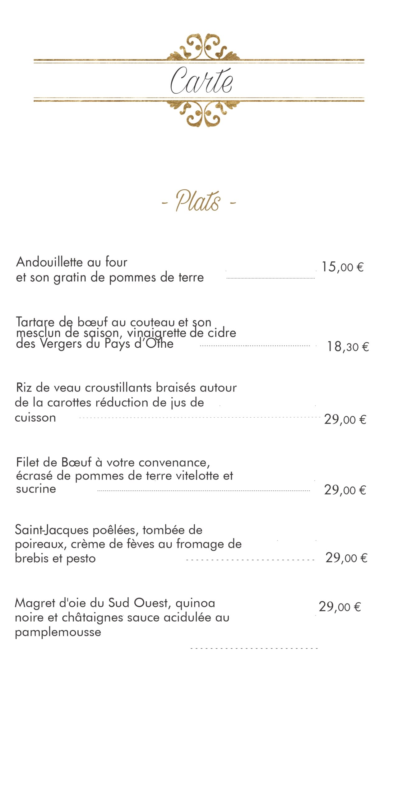 Menus et carte