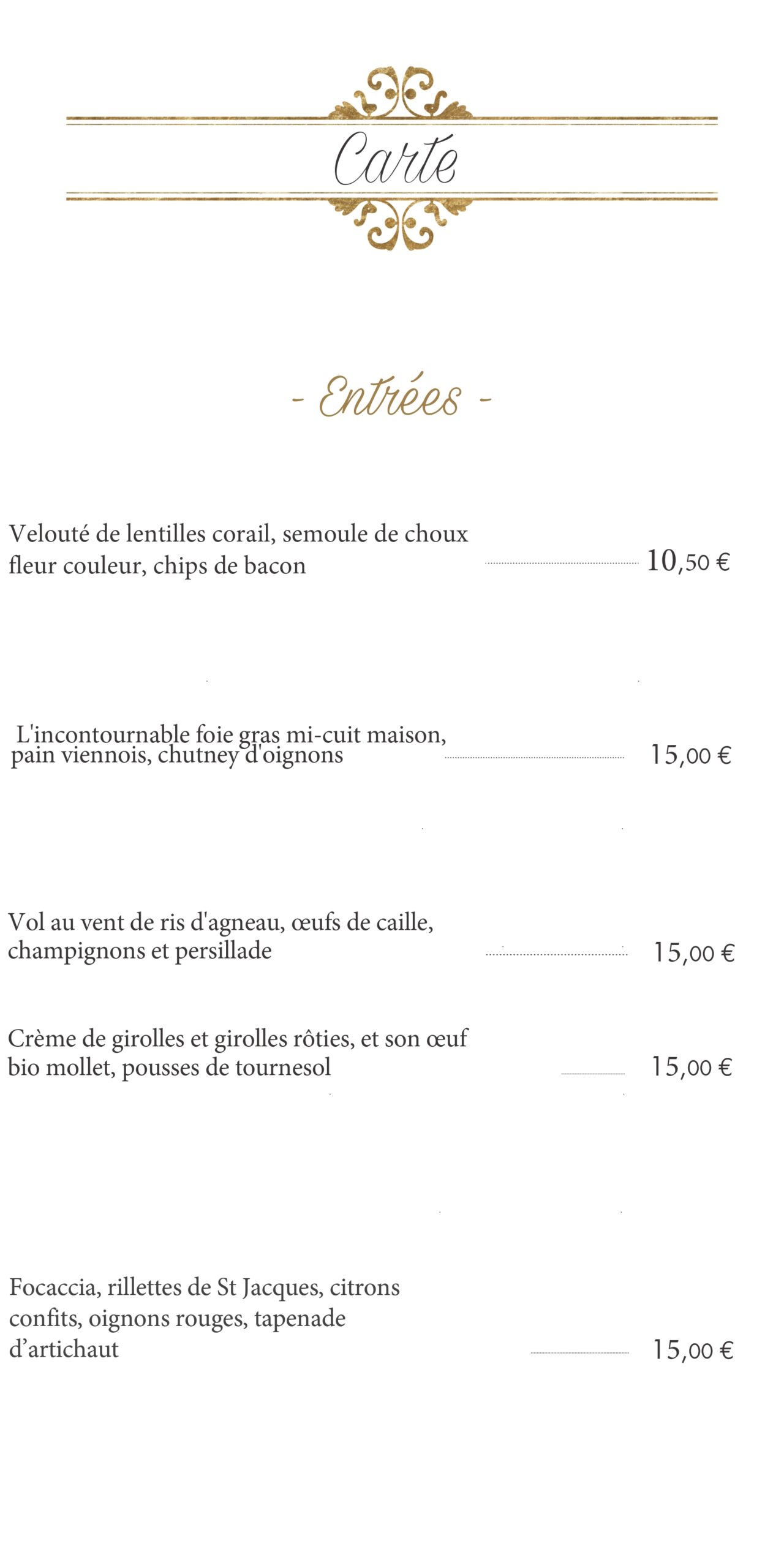 Menus et carte
