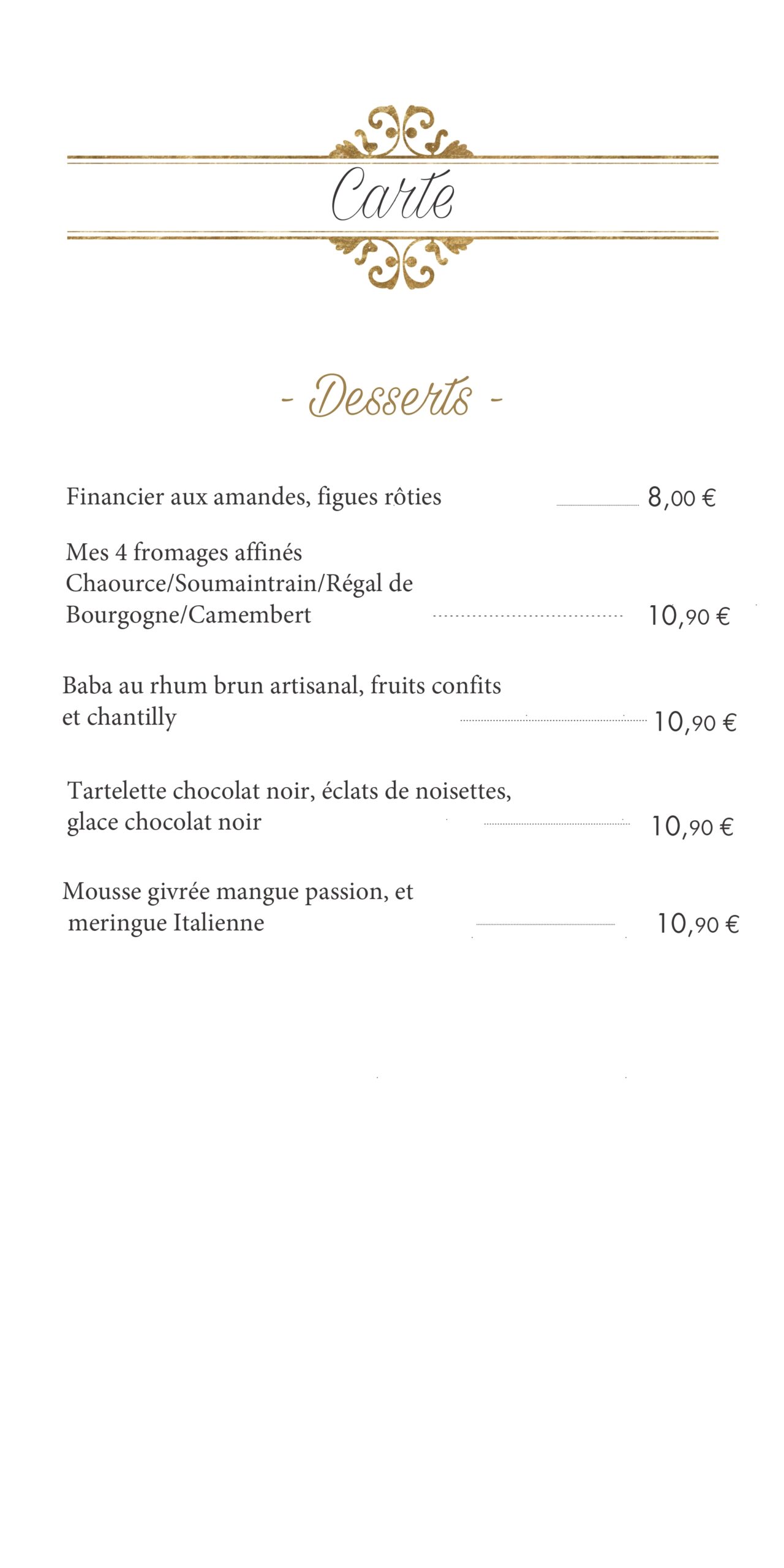 carte des vins et boissons