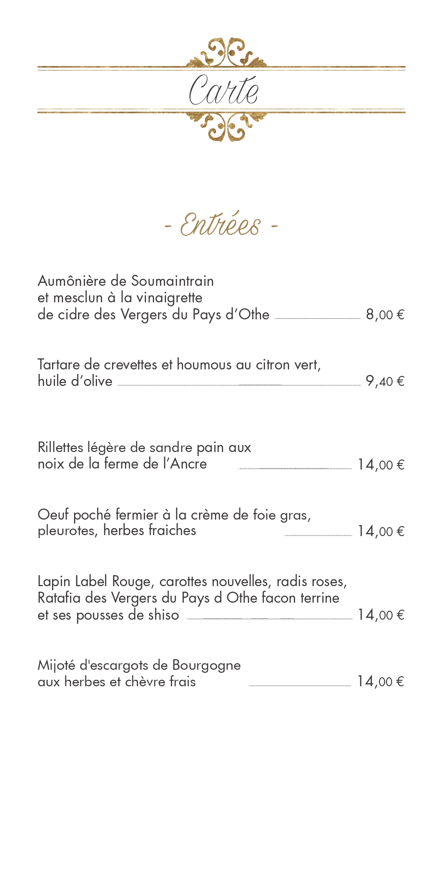 Menus et carte