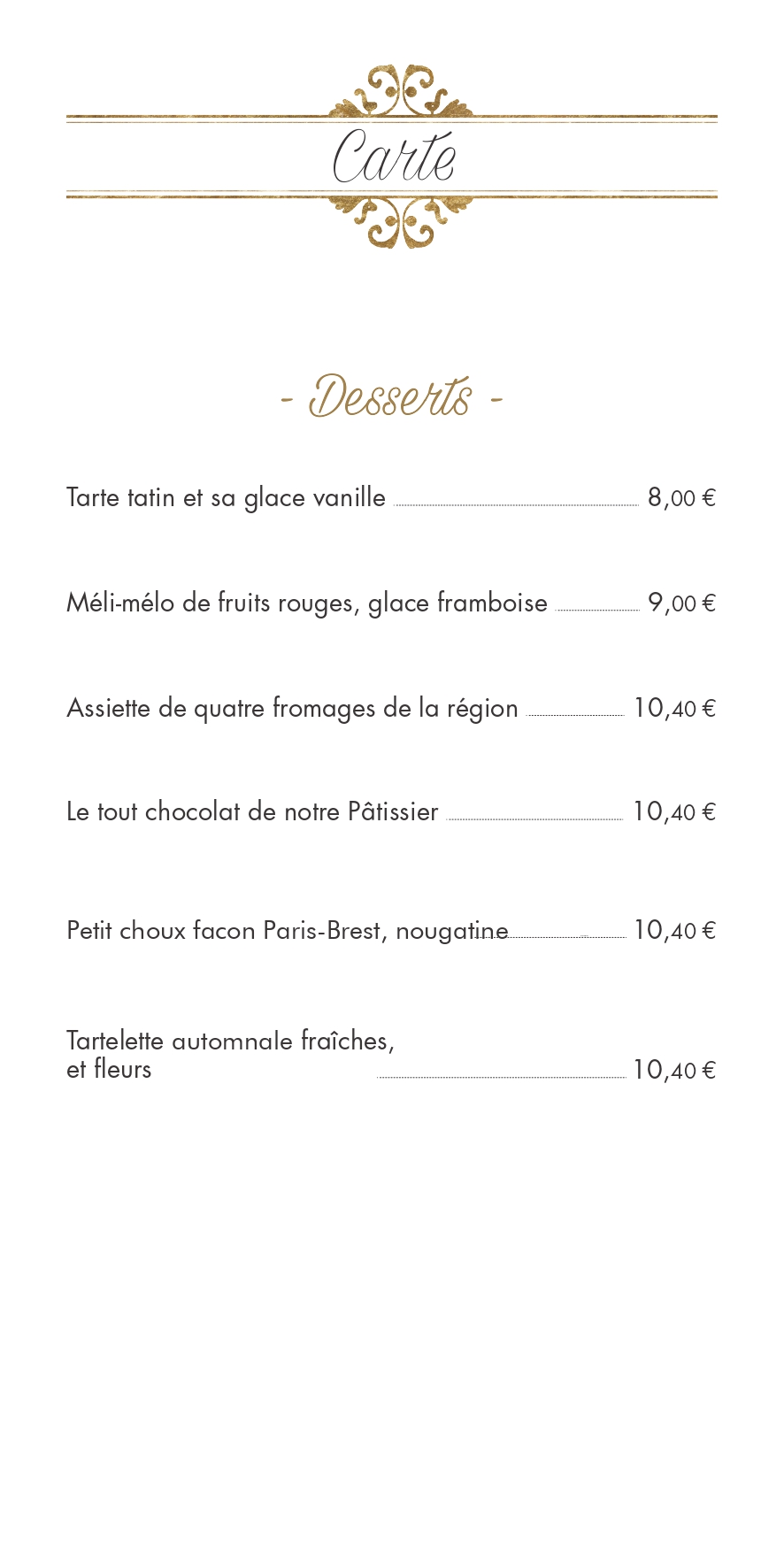 Menus et carte
